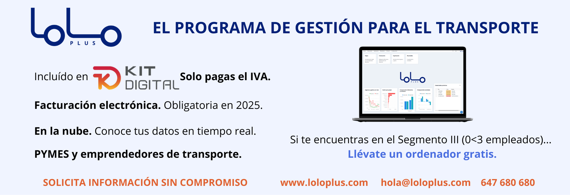 Como hemos venido informando, Asetra ha firmado un acuerdo con PLUS 42 para promover, entre las empresas integradas en la agrupación, la solución de gestión LoLoPlus que tiene como objetivo, además de facturar los servicios, dar a conocer los costes reales de una Pyme de transporte de mercancías, mostrando en tiempo real cuál es el beneficio o pérdida de una empresa. Esta herramienta, por supuesto, cumple con todas las obligaciones relativas a la próxima entrada en vigor de la obligatoriedad de la facturación electrónica