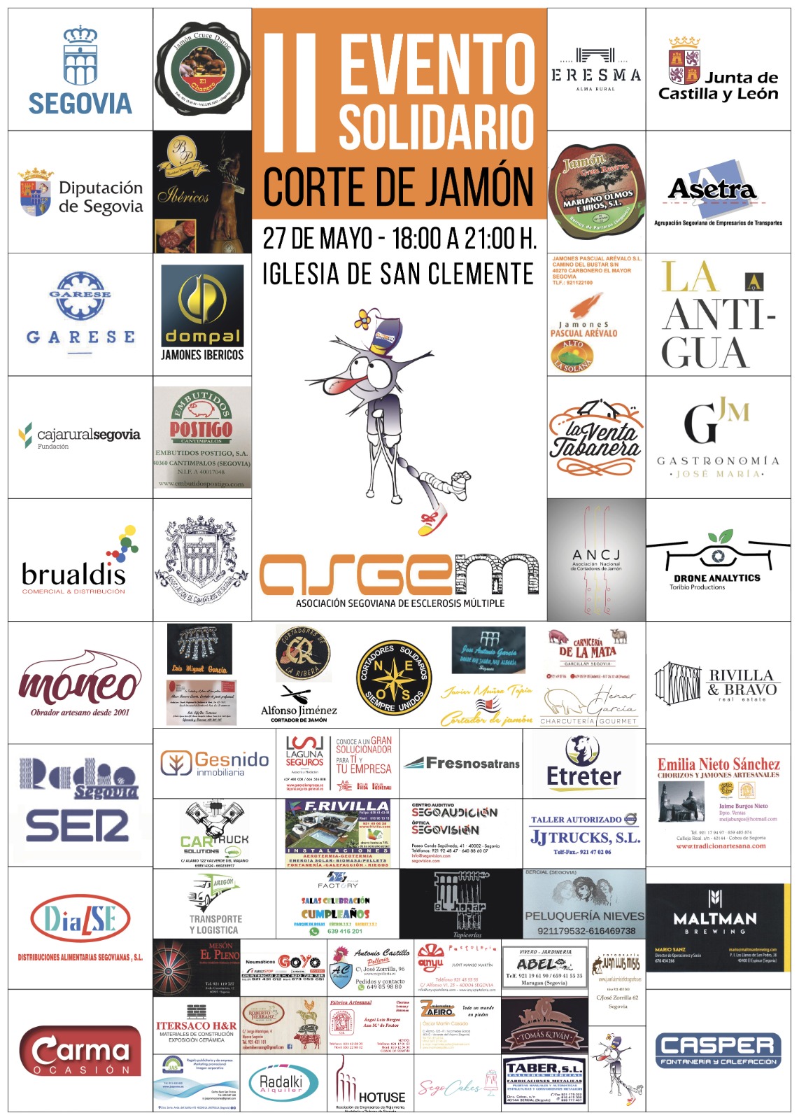 Como informamos a los socios en la revista de la asociación correspondiente a los meses de marzo y abril, número 263 (pueden consultarle aquí), Asetra está colaborando con la Asociación Segoviana de Esclerosis Múltiple (ASGEM), en diversas actividades que esta organización está promoviendo para recaudar fondos, como por el II Corte de Jamón Solidario que tendrá lugar el próximo sábado 27 de mayo de 18 a 21 horas junto a la iglesia de San Clemente, en Segovia (Avenida del Acueducto).