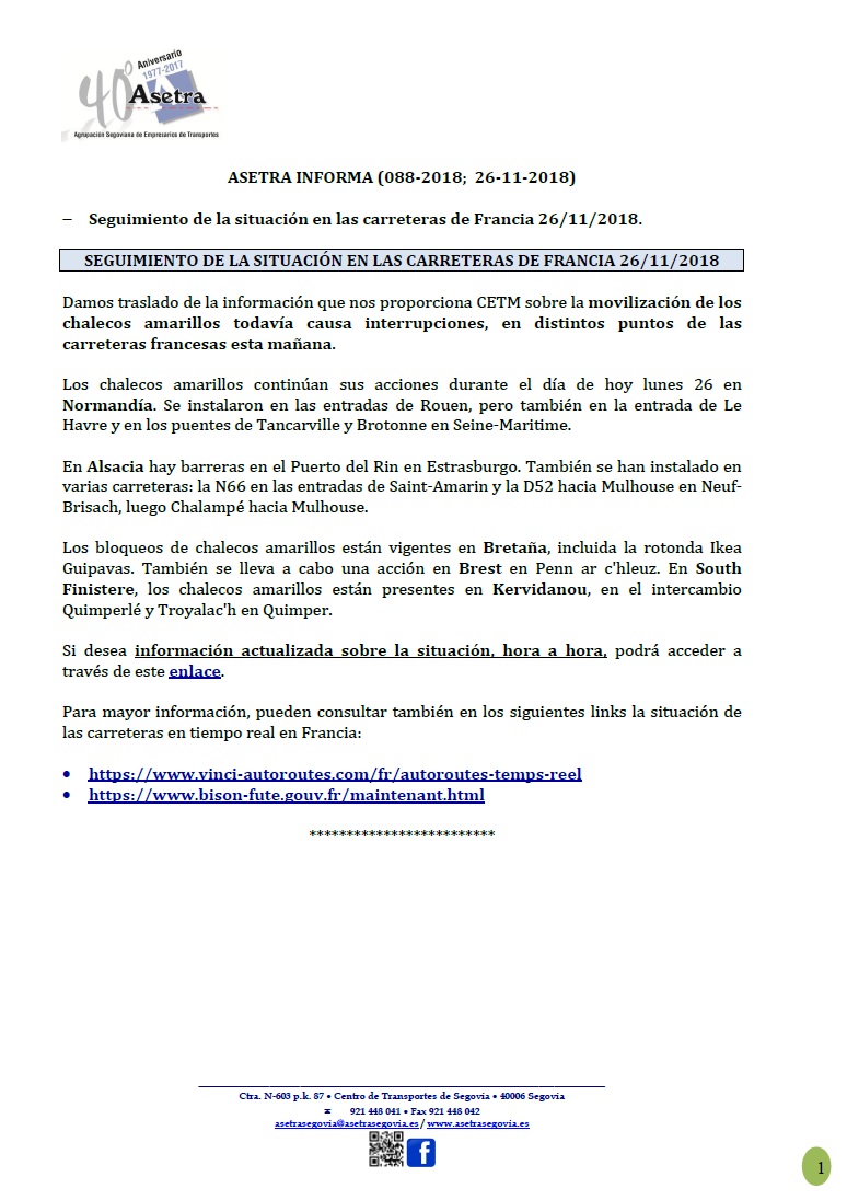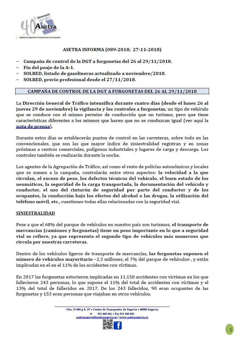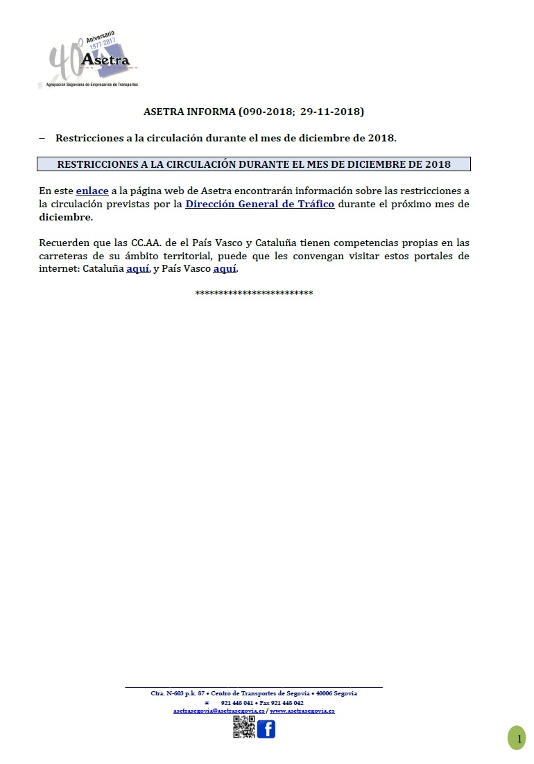 Formulario para enviar a Asetra los kilómetros recorridos en 2018, para la declaración anual de la Agencia Tributaria (gasóleo profesional). Para descargarle pincha aquí. Una vez confeccionado el impreso, nos le puedes hacer llegar, antes del viernes 14 de marzo de 2019, por cualquiera de estos medios: Fax al 921 448 042. Correo electrónico asetrasegovia@gmail.com – maria@asetrasegovia.es [...]