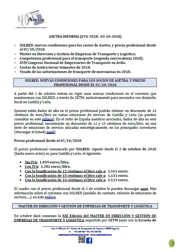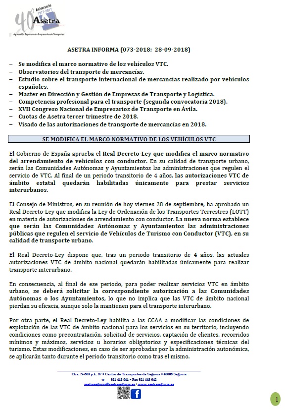 Desde el Ministerio de Fomento nos comunican que, dentro de los trabajos que se están desarrollando en la SG-20, está previsto para mañana miércoles 10 de octubre, por la tarde, la apertura del nuevo ramal 1 (Madrid-Valladolid) del enlace de la AP-61 con la SG-20. Justo en el momento de la apertura se desviará el [...]