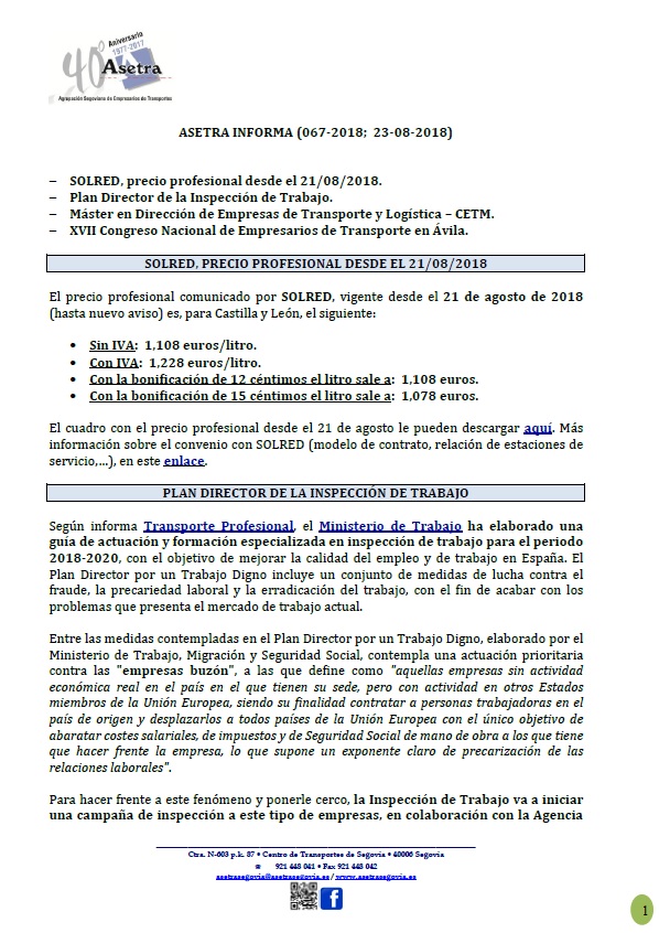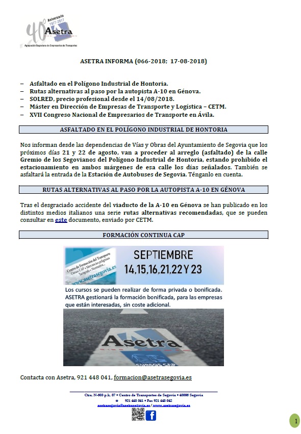 Está previsto que se publique en breves días, una convocatoria extraordinaria para obtener la competencia profesional para el transporte en Castilla y León (título de transportista), con fecha de examen en diciembre de 2018. […]