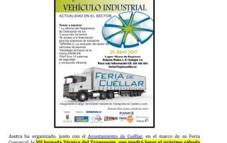 Asetra ha organizado, junto con el Ayuntamiento de Cuéllar, en el marco de su Feria Comarcal, la VII Jornada Técnica del Transporte, que tendrá lugar el próximo sábado 29 de abril de 2017, en el Vivero de Empresas, Palacio de Pedro I (calle Colegio s/n). El programa de esa interesante jornada es este (pueden descargarle [...]