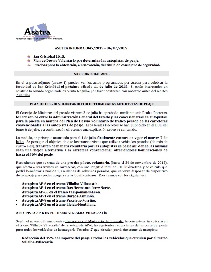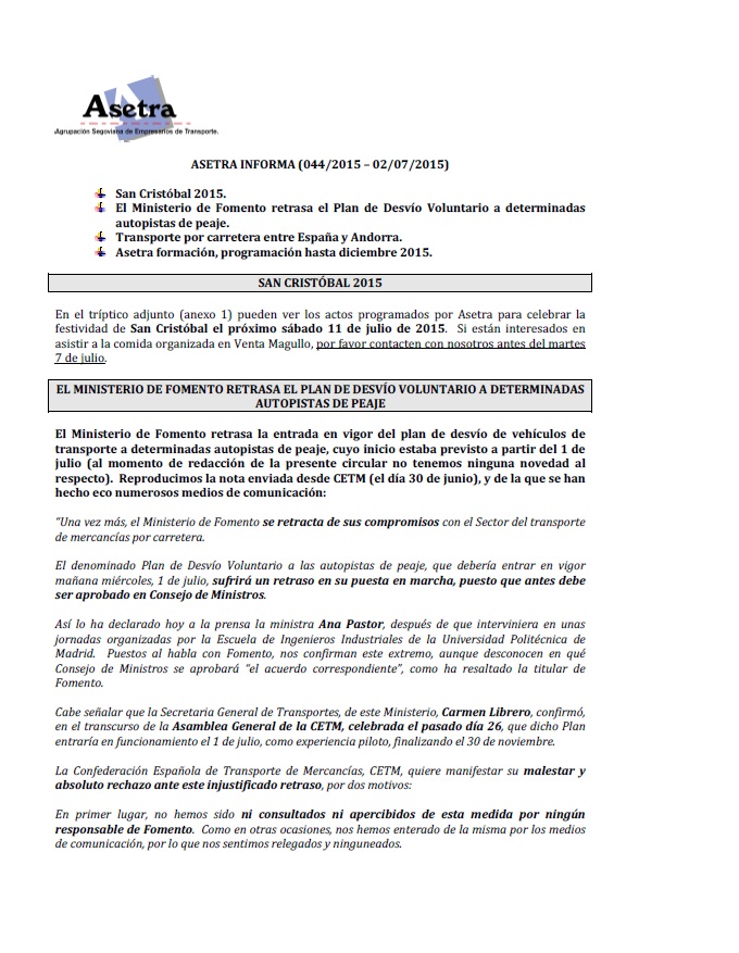 Asetra informa 45-2015 Anexo 1 Anexo 2