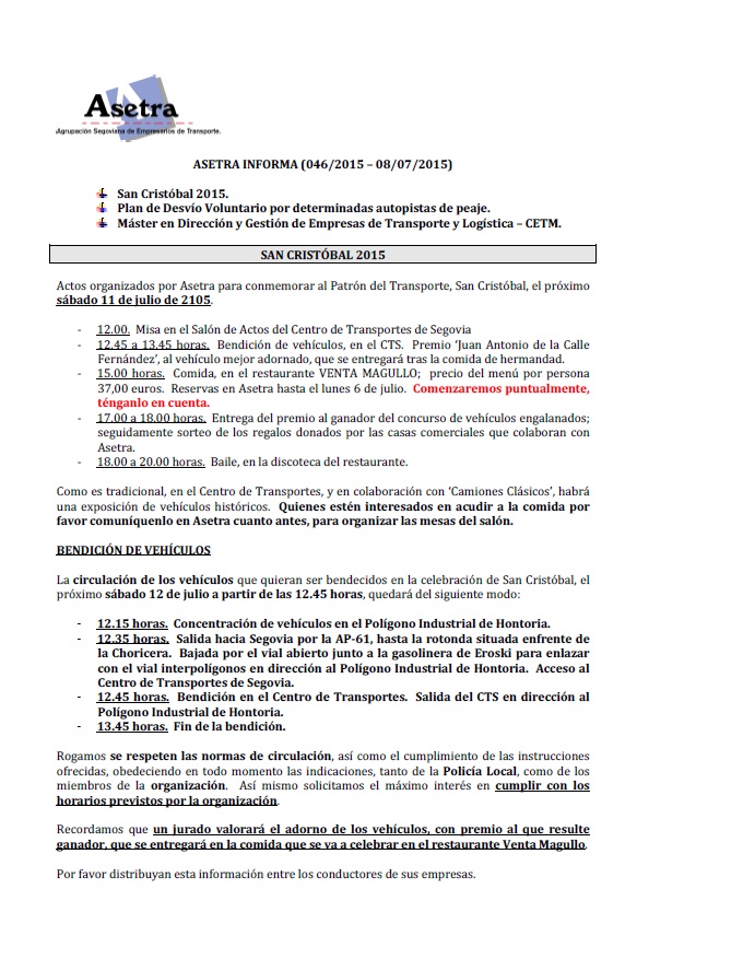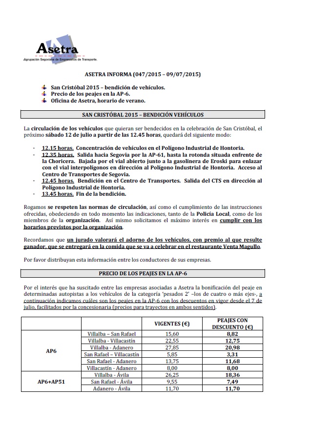Asetra informa 49-2015 Anexo 1 Anexo 2 Anexo 3
