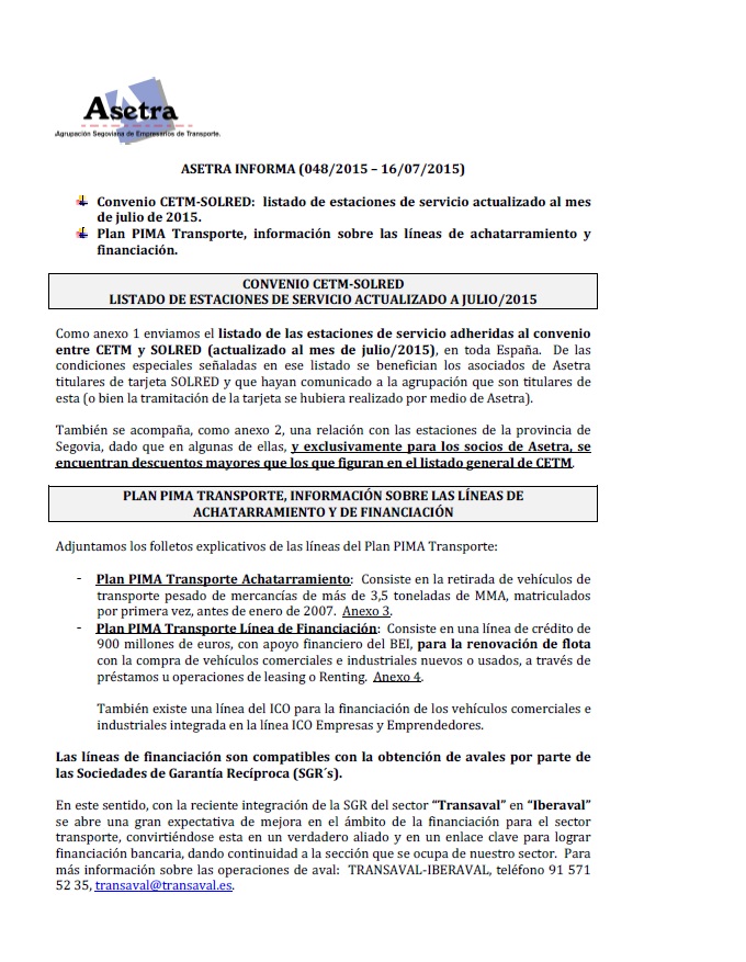 Asetra informa 50-2015 Anexo 1 Anexo 2