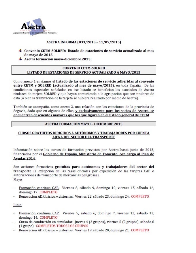 Asetra informa 33-2015 Anexo 1 Anexo 2