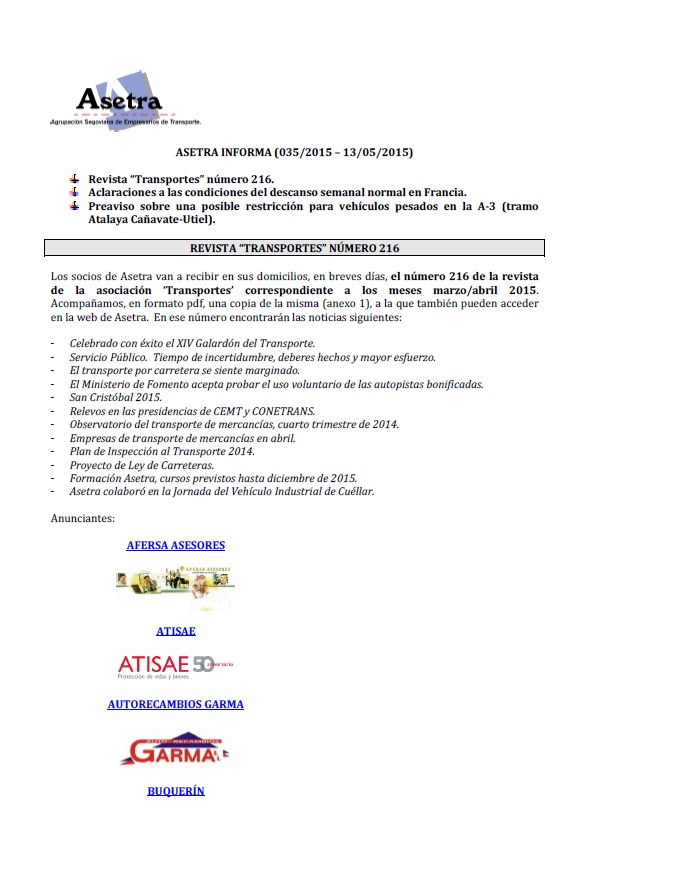 Asetra informa 35-2015 Anexo 1 Anexo 2