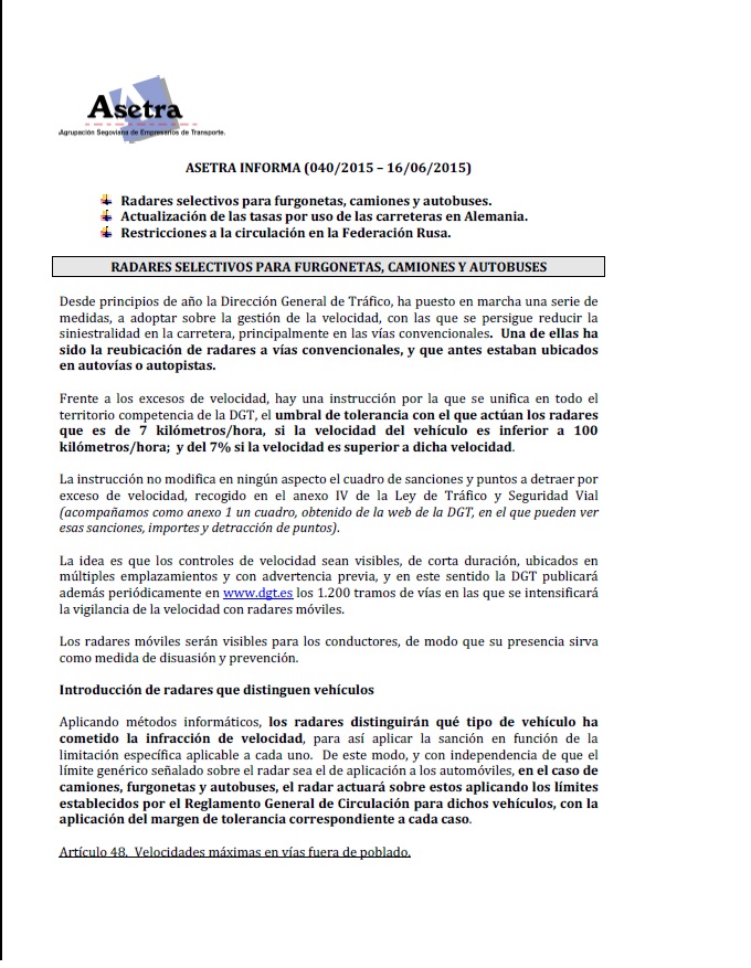 Asetra informa 40-2015 Anexo 1 Anexo 2 Anexo 3