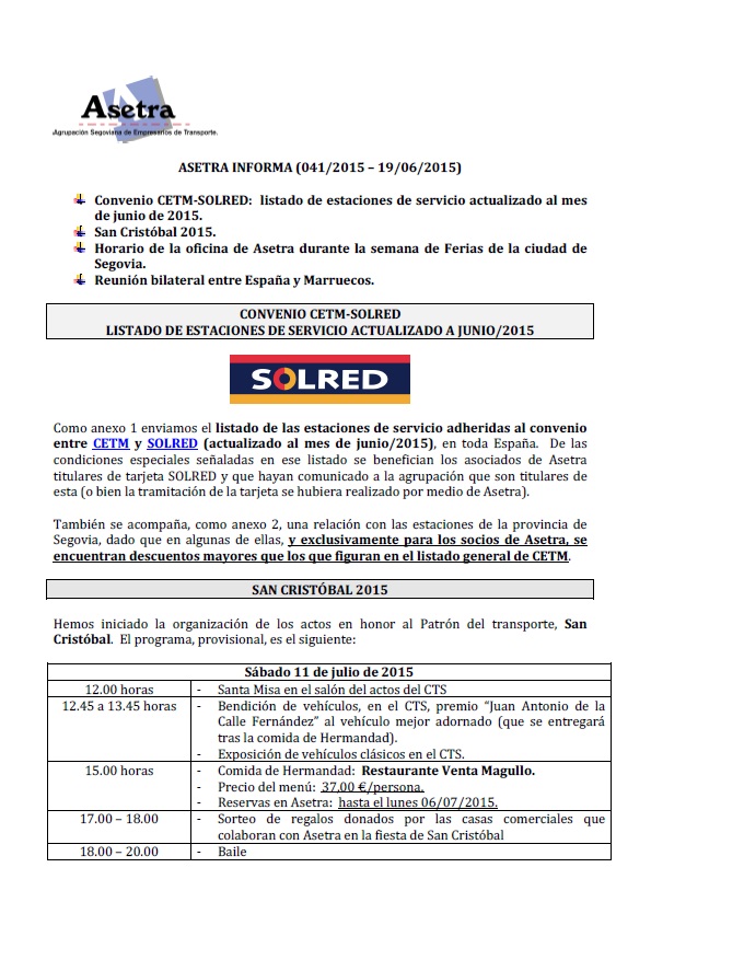 Asetra informa 41-2015 Anexo 1 Anexo 2
