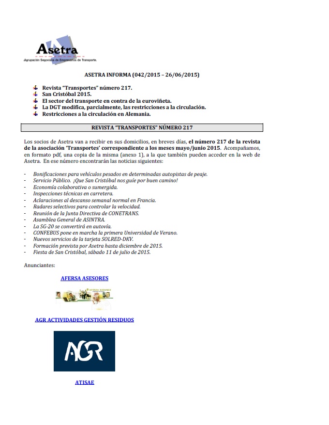 Asetra informa 42-2015 Anexo 1 Anexo 2