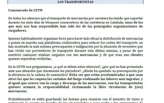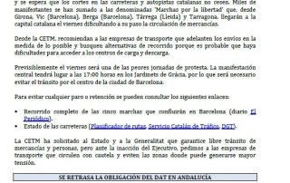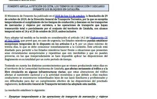 Fomento anula, a petición de CETM, los tiempos de conducción y descanso durante los bloqueos en Cataluña. Controles sanitarios y fitosanitarios en el Reino Unido después del BREXIT. Calendario laboral 2020. Para descargar el archivo pinche aquí..