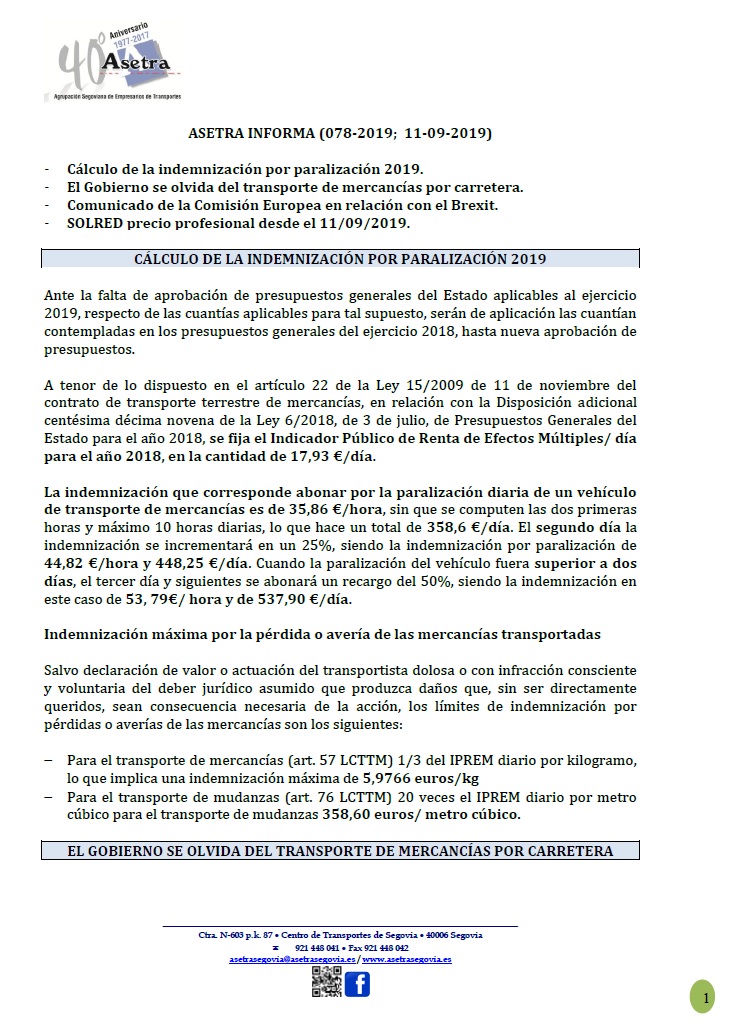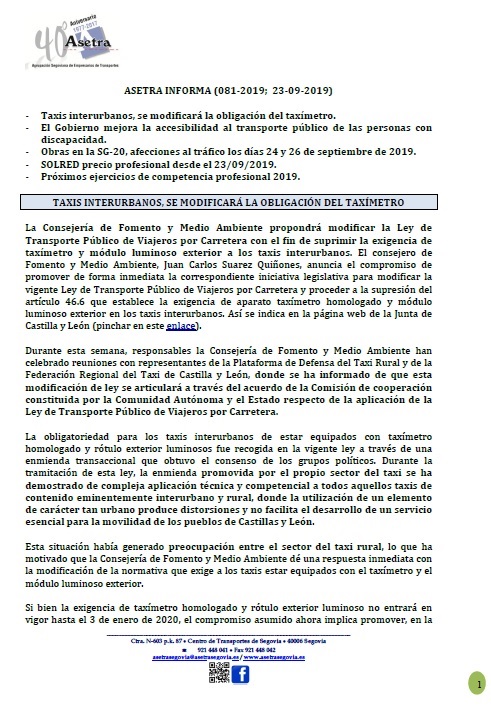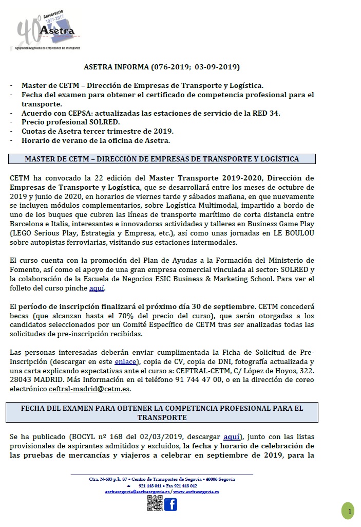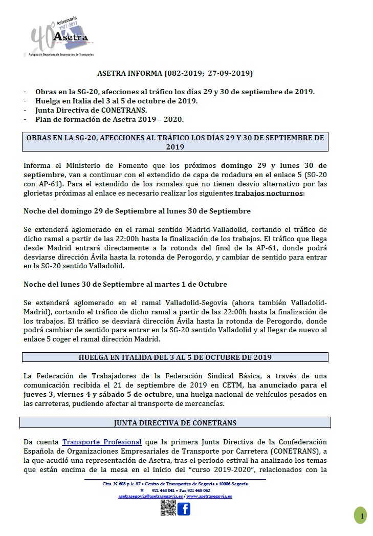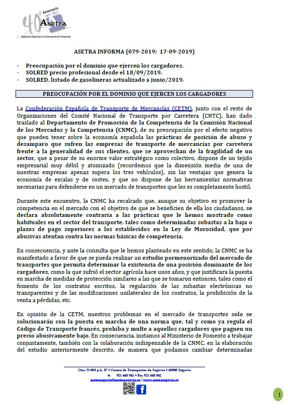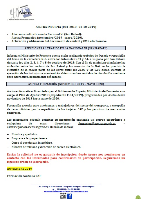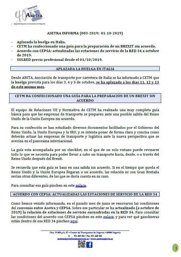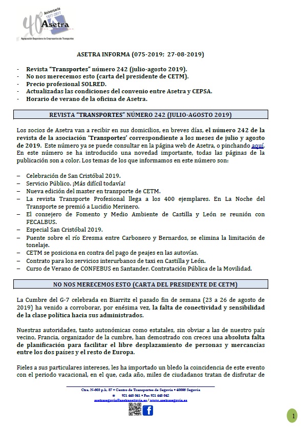 Asetra Informa 85-2019 (08/10/2019)