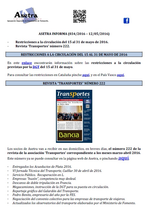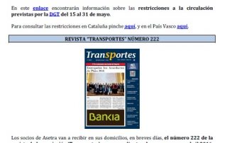 Restricciones a la circulación del 15 al 31 de mayo de 2016. Revista ‘Transportes’ número 222. Para descargar el archivo pincha aquí