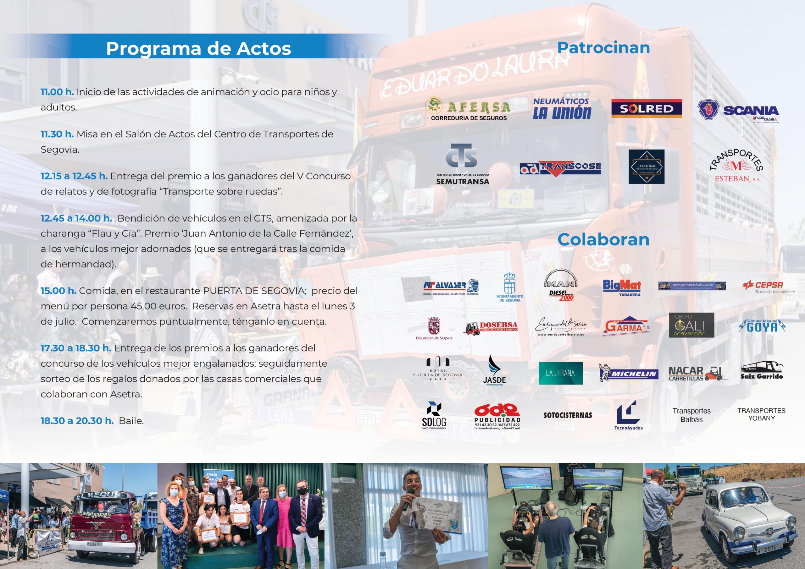 Ya hemos cerrado el programa de actividades del próximo sábado 8 de julio, con motivo del patrón del transporte, San Cristóbal, en Segovia. Pueden descargarle en este enlace. Quien desee acudir a la comida en el restaurante Puerta de Segovia, por favor que nos lo diga con la mayor brevedad.