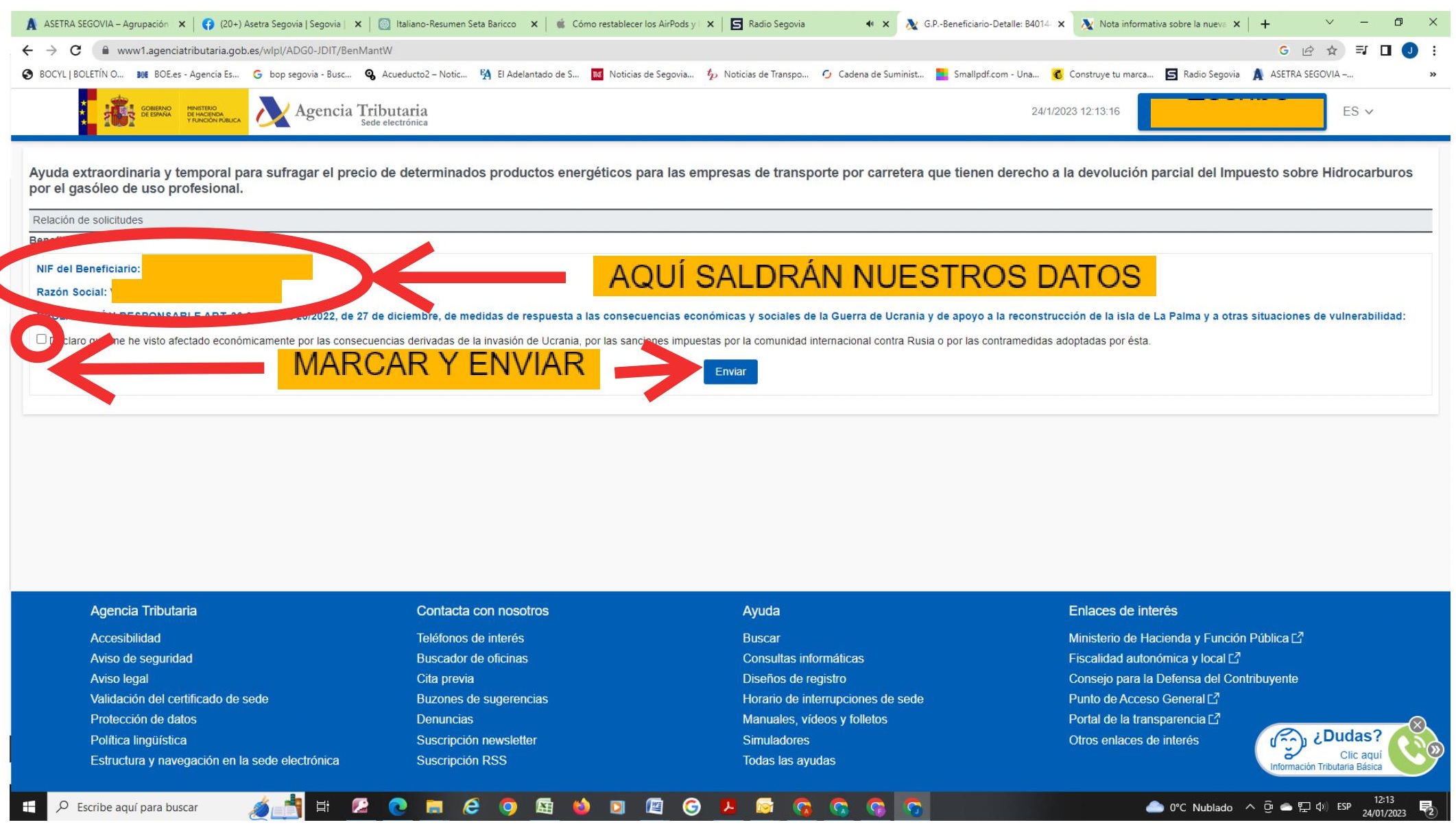 Una vez dentro tendremos que marcar la casilla que dice ‘declaro que me he visto afectado económicamente por las consecuencias derivadas…’, y a continuación clicar en ‘enviar’.