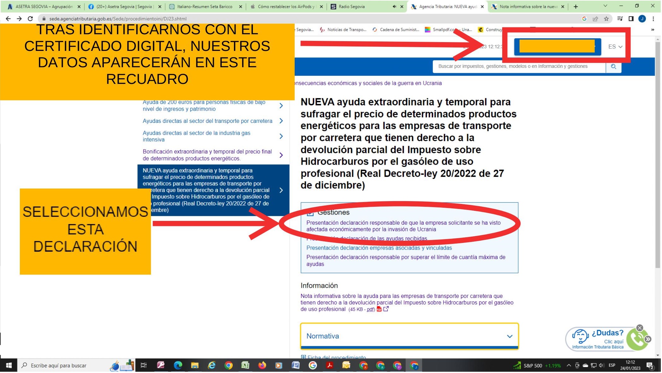 Tras hacer clic en ‘Nueva ayuda…’, deberán identificarse con su certificado digital,