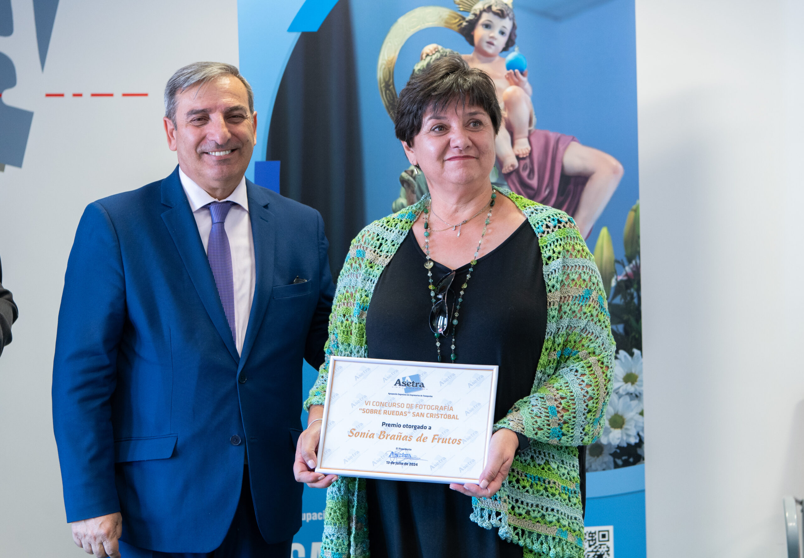 El pasado sábado 13 de julio acudió a los actos organizados por Asetra con motivo de la festividad de Asetra, entregando el premio a Sonia Brañas, como ganadora del concurso de fotografías en la categoría de socios, momento que recoge la siguiente imagen.