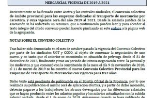 Notas al convenio colectivo de transporte de mercancías 2019-2021