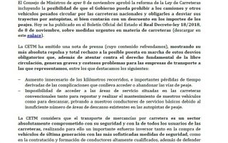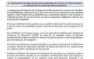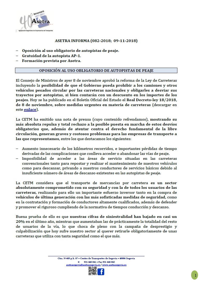 Oposición al uso obligatorio de autopistas de peaje. Gratuidad de la autopista AP-1. Formación prevista por Asetra. Para descargar el documento pinche aquí.