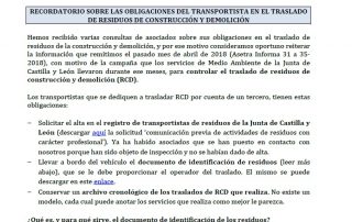 Recordatorio sobre las obligaciones del transportista en el traslado de residuos de construcción y demolición