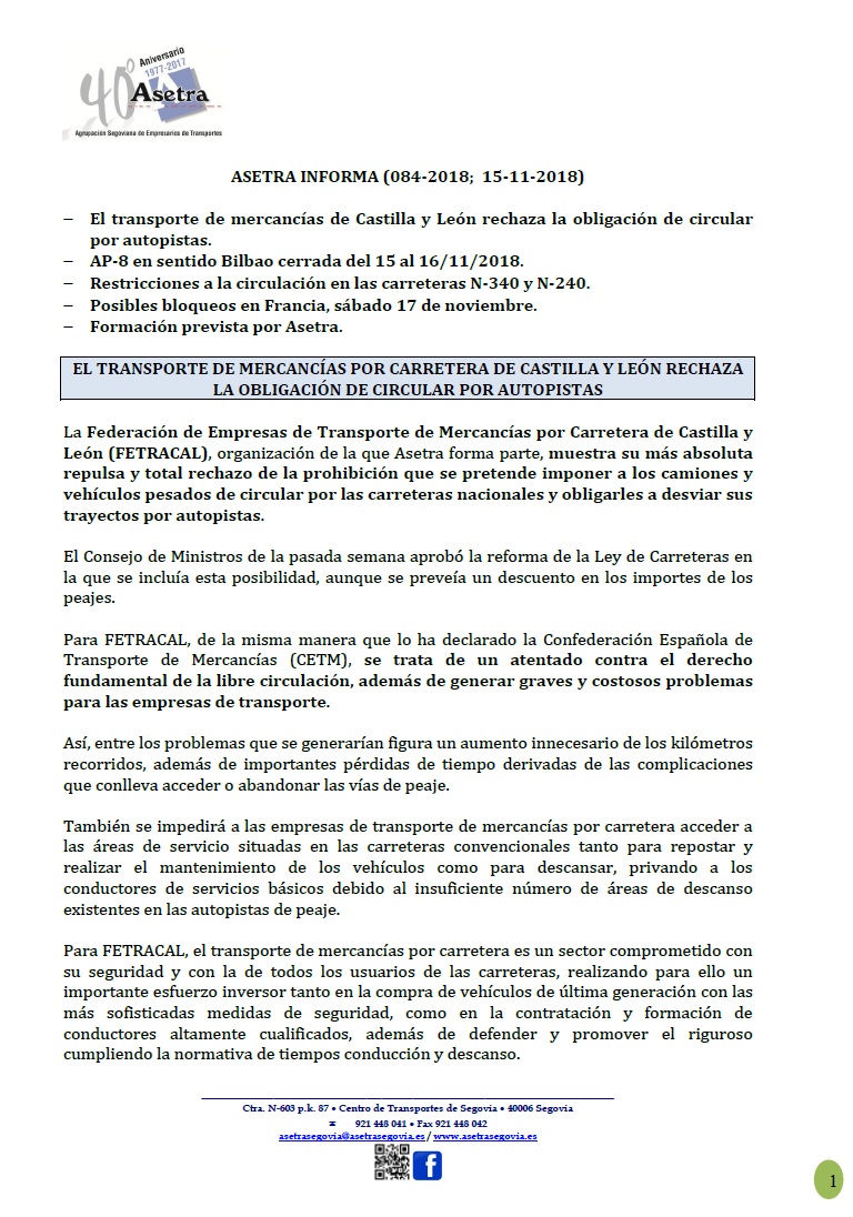 Asetra informa 84-2018 (15/11/2018)