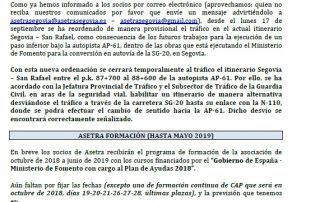 A partir del lunes día 17 de septiembre se llevará a cabo una ordenación provisional de tráfico en el actual itinerario Segovia – San Rafael, como consecuencia de los futuros trabajos para la ejecución de [...]