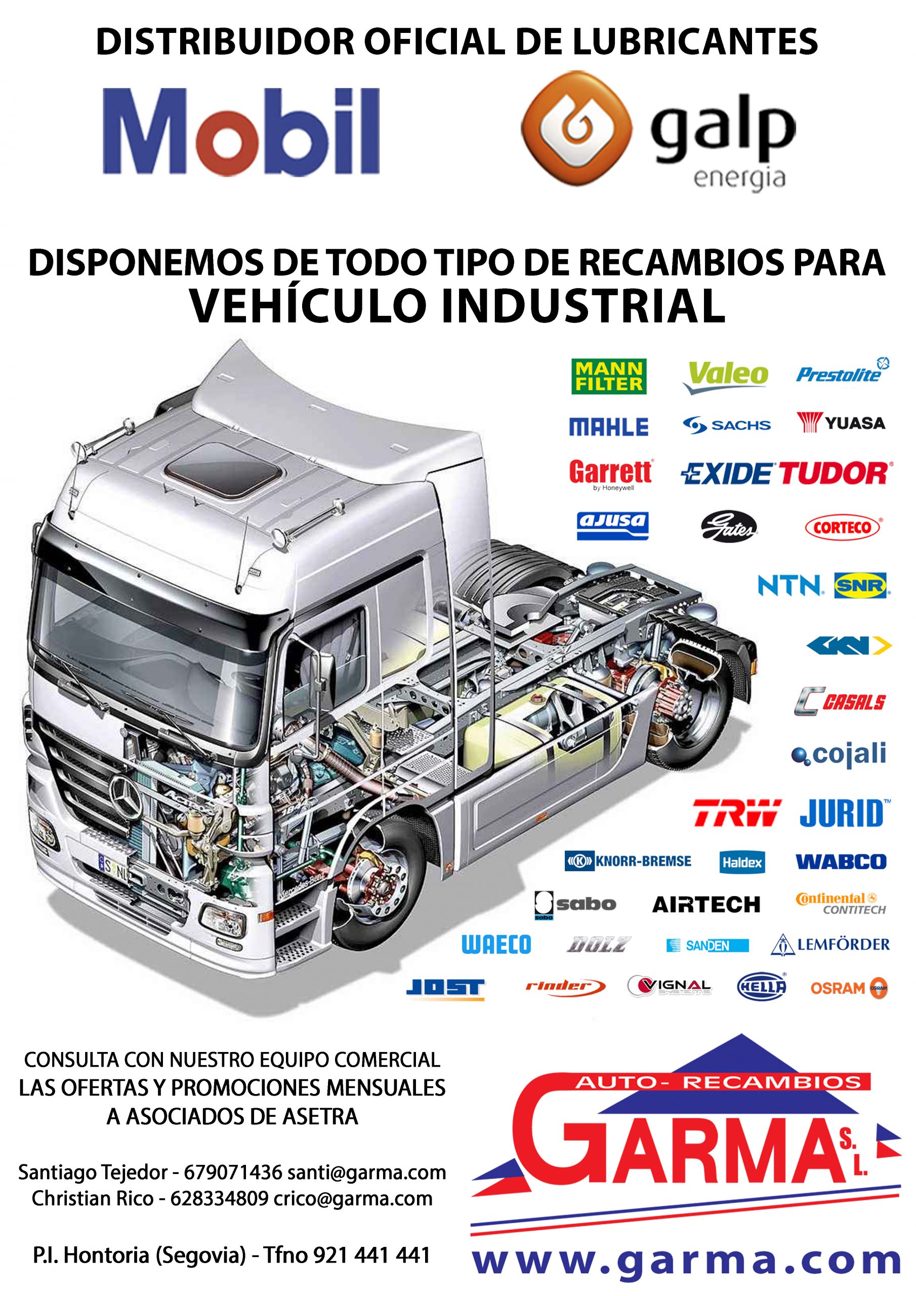 La empresa especialista en recambios para el vehículo industrial, AUTORECAMBIOS GARMA, con una experiencia de más de treinta años, colaborador de Asetra en nuestra revista “Transportes”, se dirige a los transportistas segovianos para ofrecerles su [...]