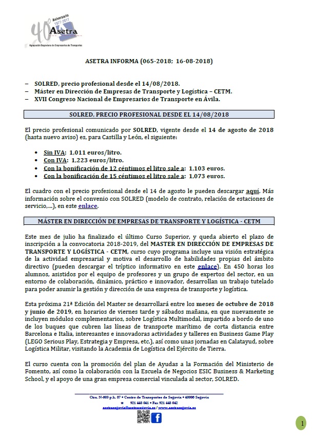 Asetra Informa 65-2018 (16/08/2018)