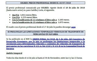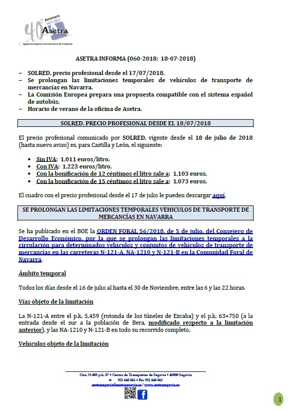 SOLRED, precio profesional desde el 17/07/2018. Se prolongan las limitaciones temporales de vehículos de transporte de mercancías en Navarra. La Comisión Europea prepara una propuesta compatible con el sistema español de autobús. Horario de verano [...]