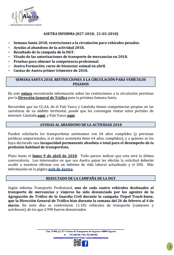 Asetra Informa 27-2018 (21/03/2018)