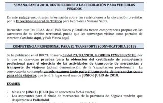 Competencia profesional para el transporte (convocatoria de 2018). XVII Galardón Empresarial del Transporte, miércoles 25 de abril. Ayudas al abandono de la actividad, convocatoria 2018. Jornada técnica del vehículo industrial, Cuéllar, sábado 21 de abril. [...]