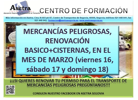 Curso para renovar la autorización de transporte de mercancías peligrosas en marzo (viernes 16, sábado 17 y domingo 18): […]