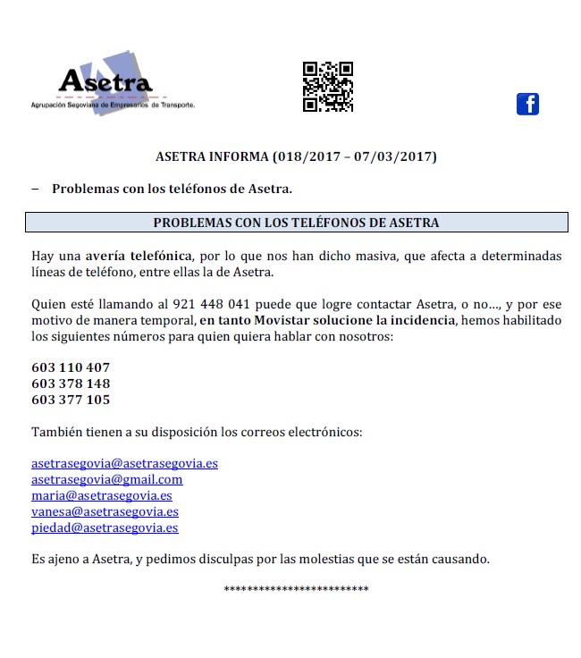 Problemas con los teléfonos de Asetra. Si quieres descargar el archivo pincha aquí.