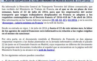 Ha informado la Dirección General de Transporte Terrestre del último comunicado, que han recibido del Ministerio de Trabajo de Francia, en el que se da un plazo de tres semanas, hasta el 22 de julio [...]