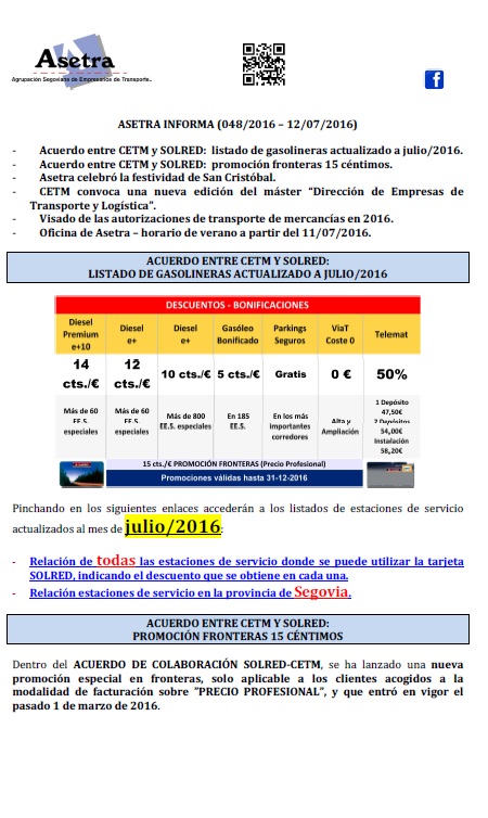 Acuerdo entre CETM y SOLRED: listado de gasolineras actualizado a julio/2016. Acuerdo entre CETM y SOLRED: promoción fronteras 15 céntimos. Asetra celebró la festividad de San Cristóbal. CETM convoca una nueva edición del máster “Dirección [...]